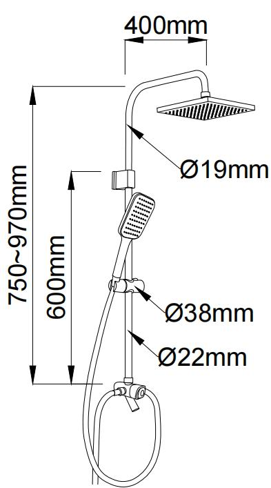 Chrome shower set- with 5 functions hand shower,8″ rain shower,soap dish,3-way diverter for instant water heater-L03003